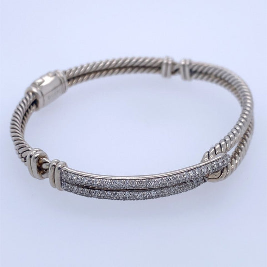 David Yurman Silver Diamond Labyrinth Single Loop Hinged Bracelet