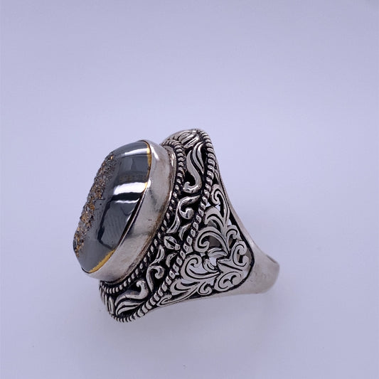 925 Sterling Silver Custom Gold Flake Vintage Ring