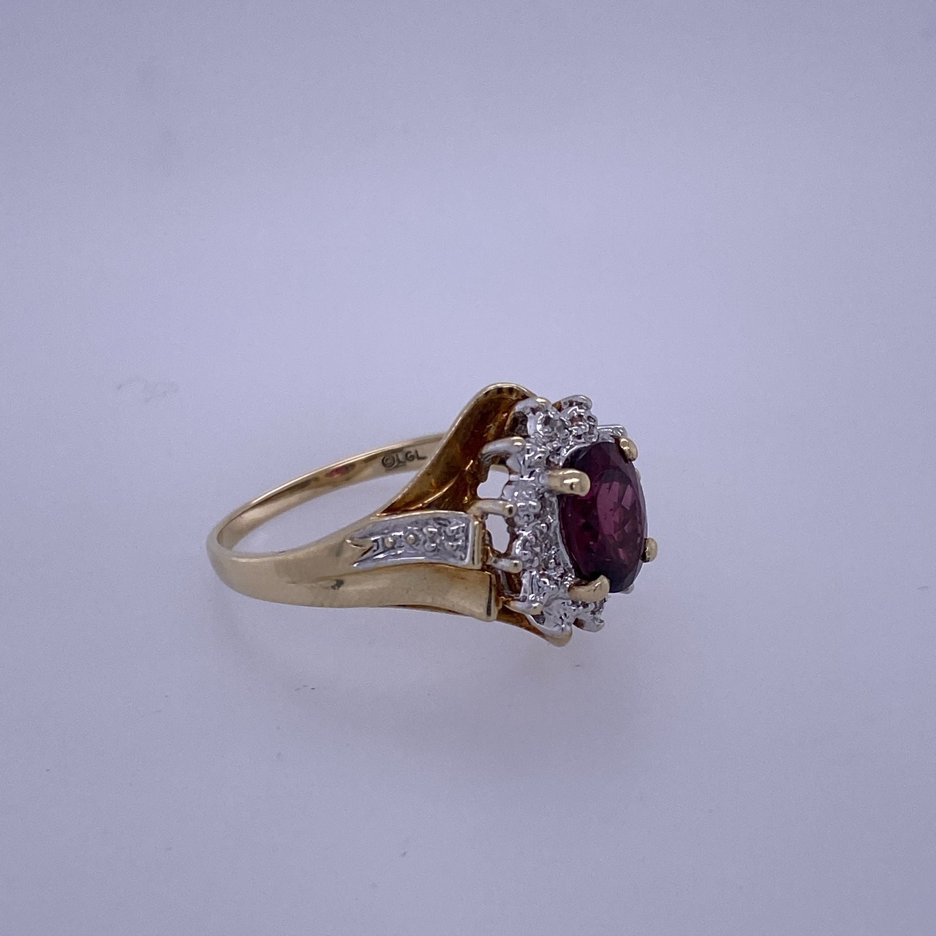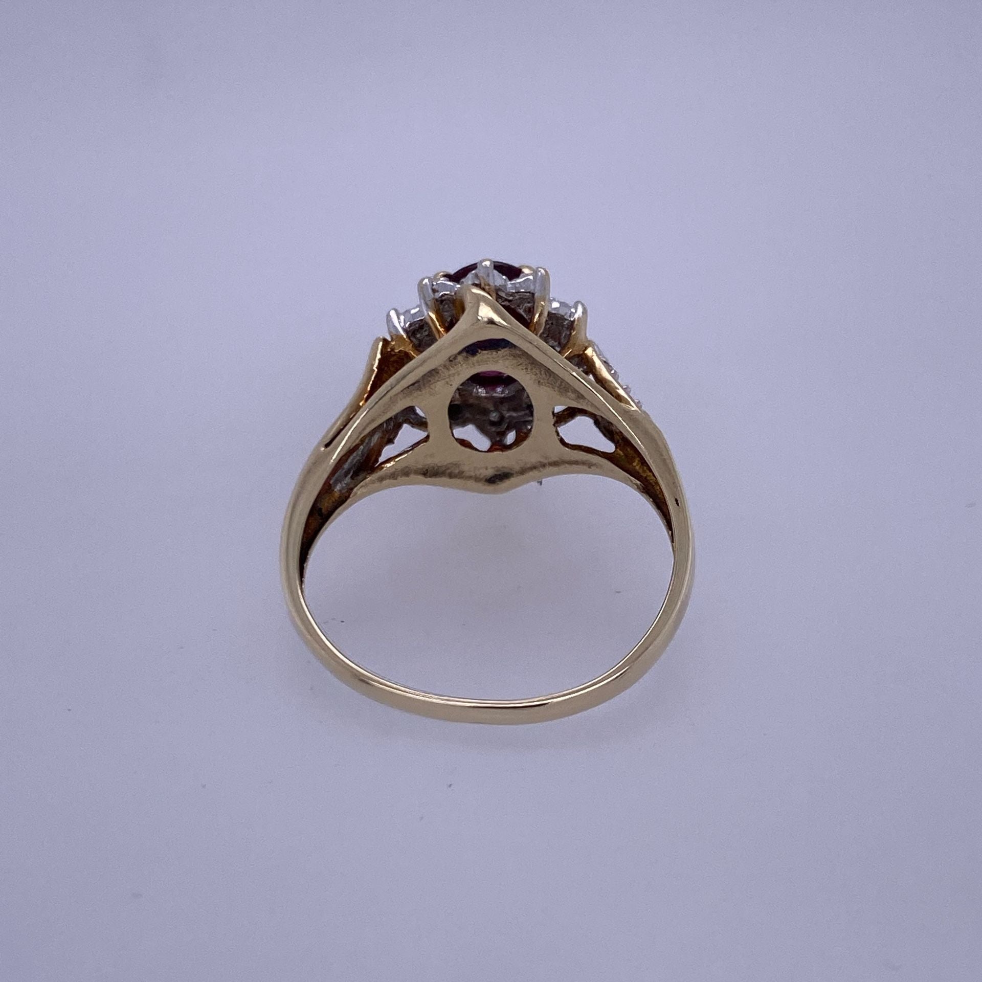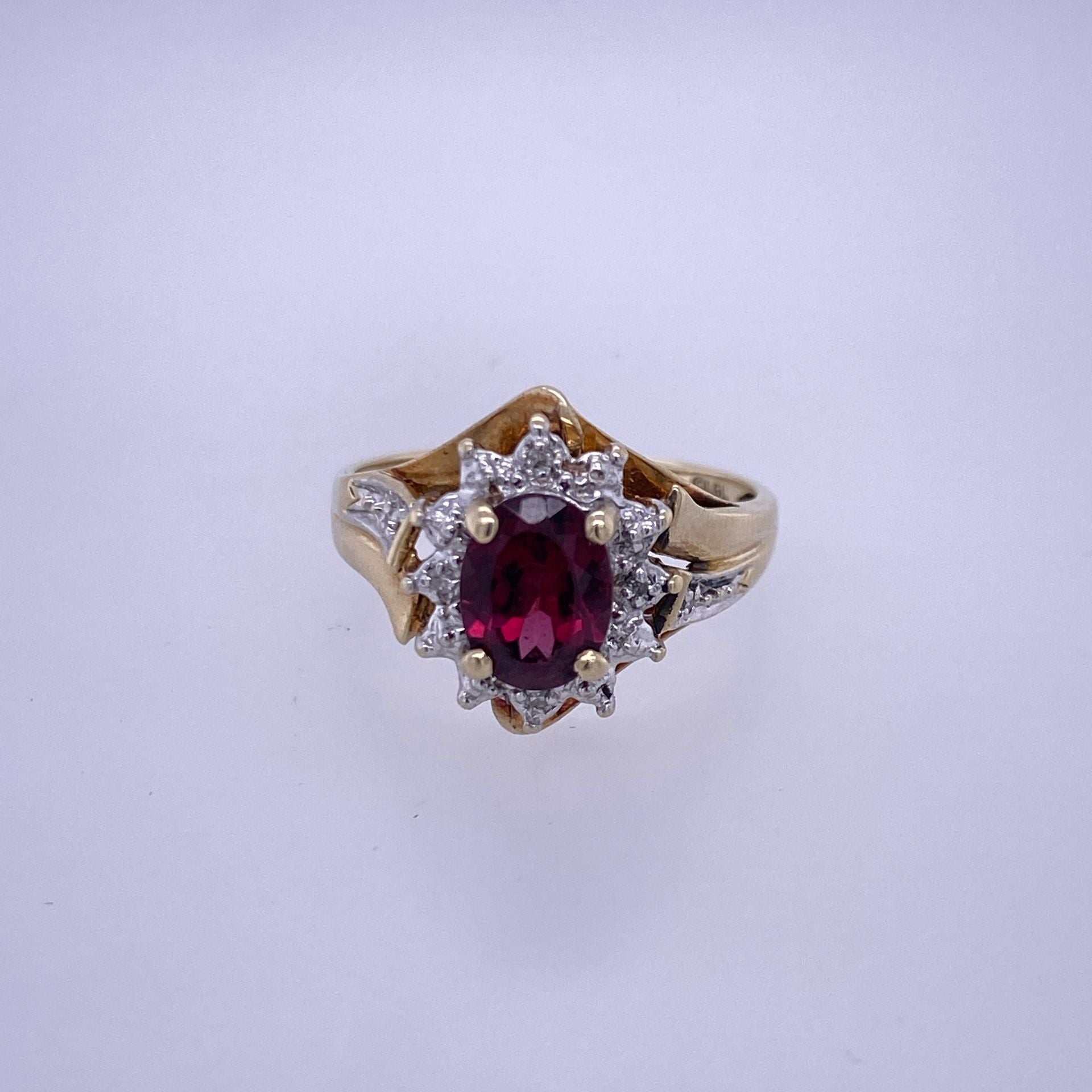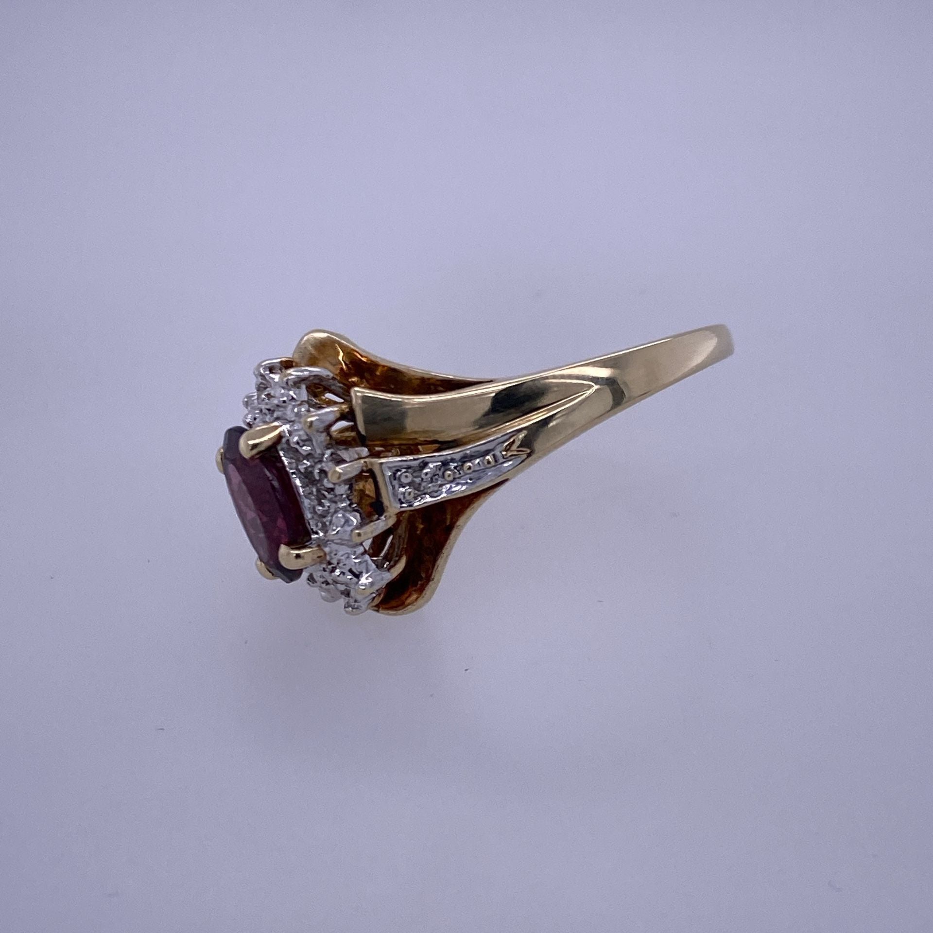 10k Yellow Gold Diamond Ring W/ Red Colored Center Stone