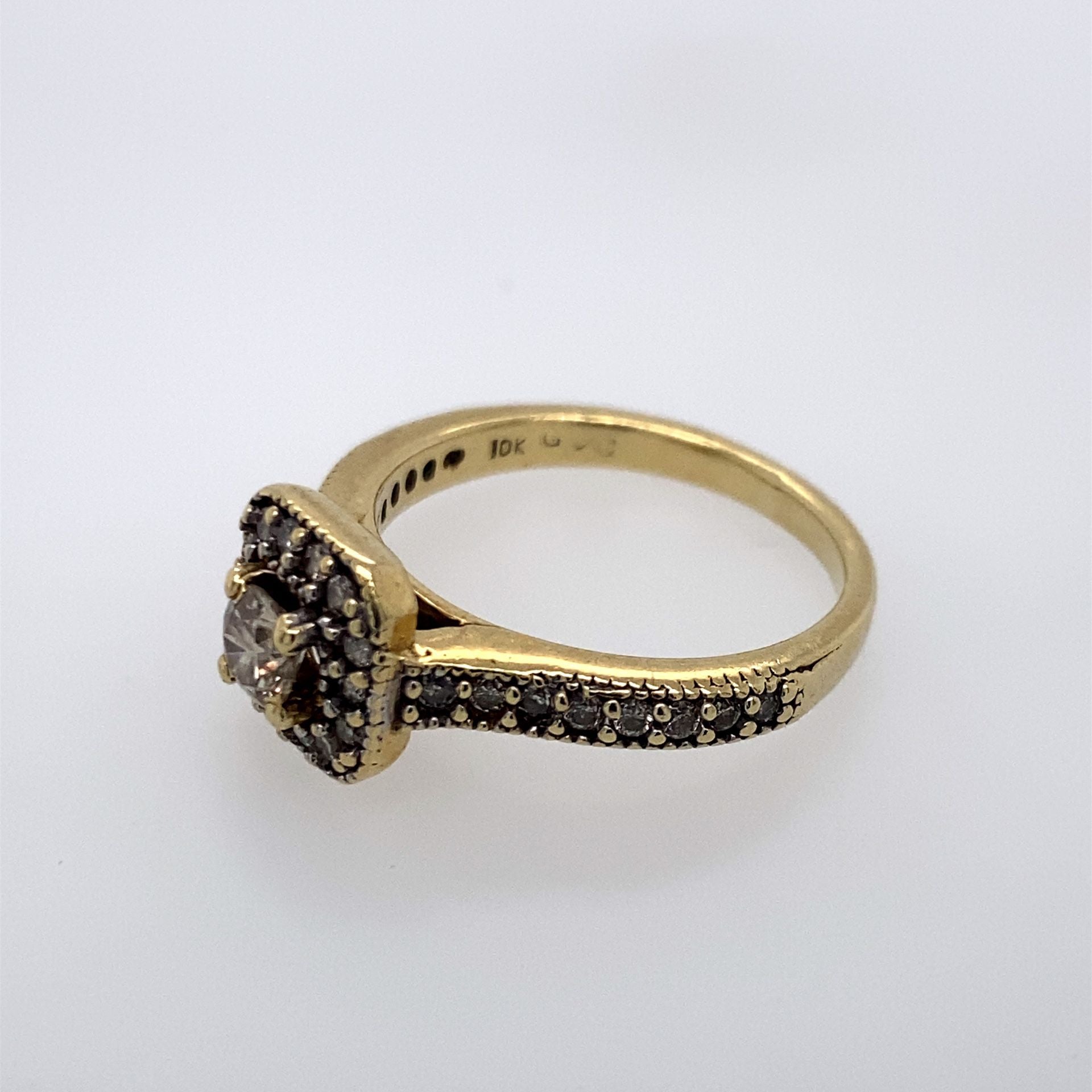 10k Yellow Gold Ring With Princess Cut Center Diamond Stone