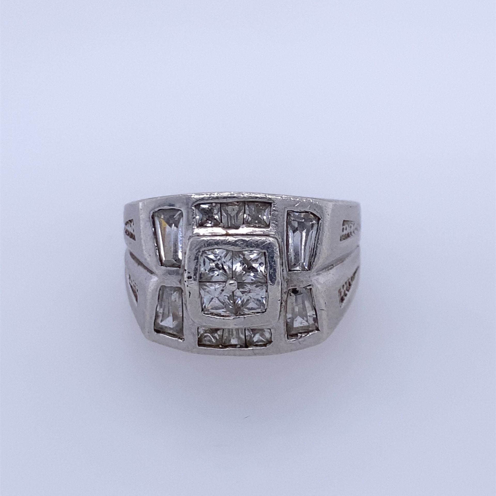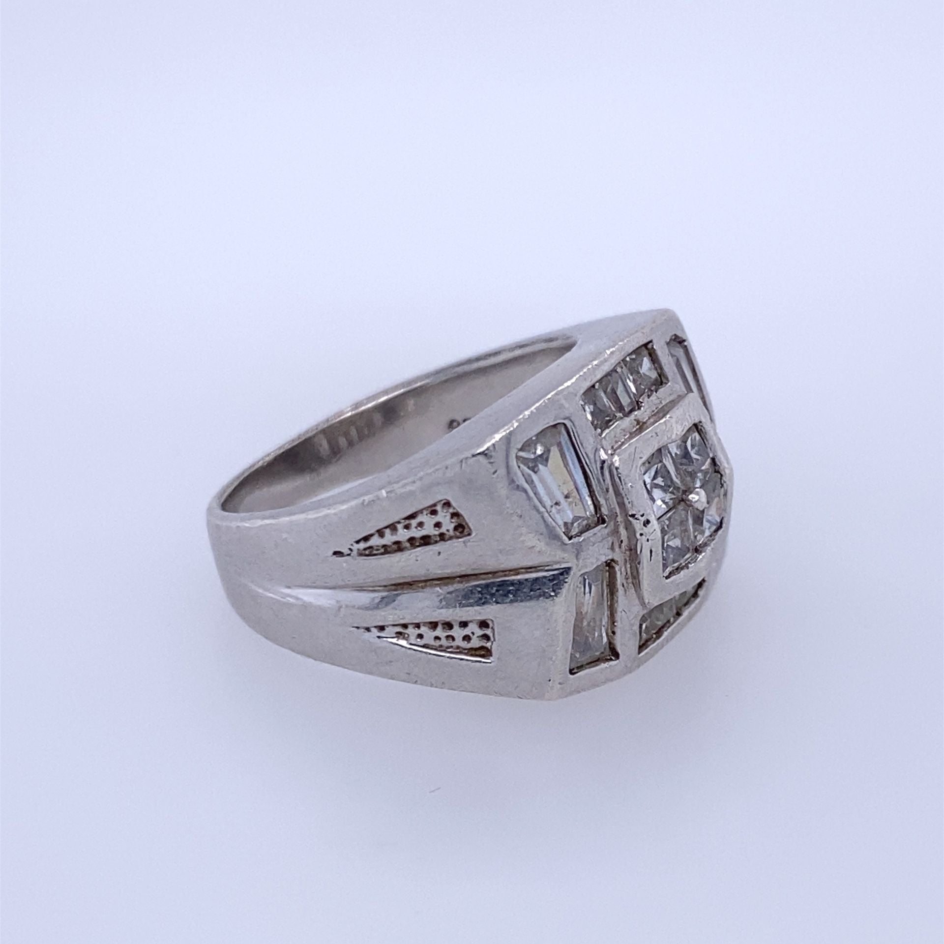 925 Silver Ring W/ Princess & Baguette Cut Clear Stones