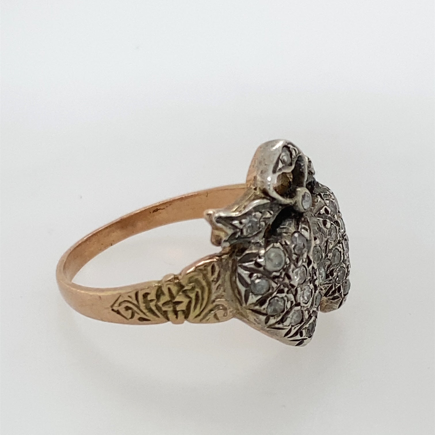 925 Sterling Silver/8k Rose Gold Antique Ring With Diamond Stones