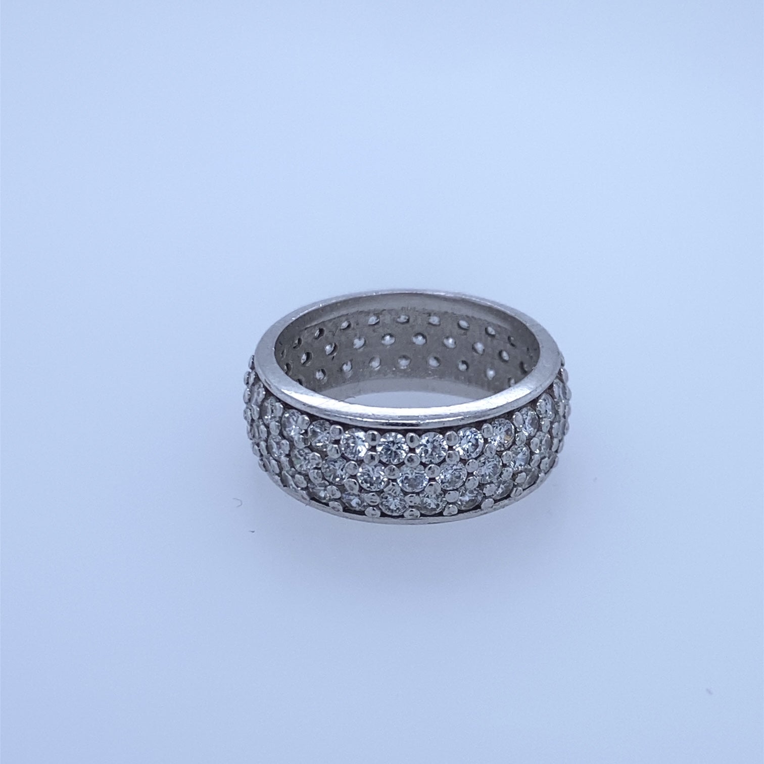 925 Sterling Silver Band Ring W/ CZ Stones all Across