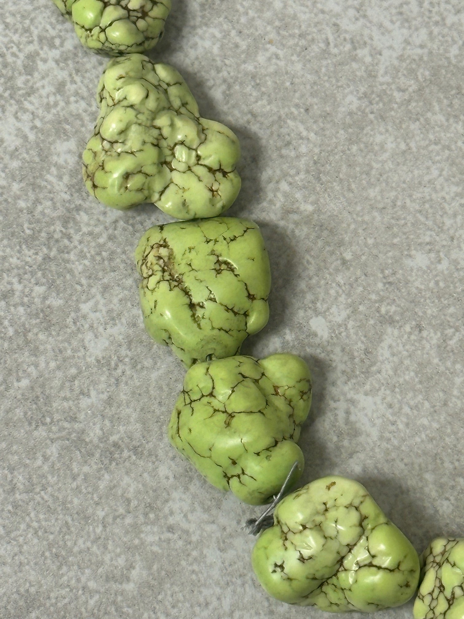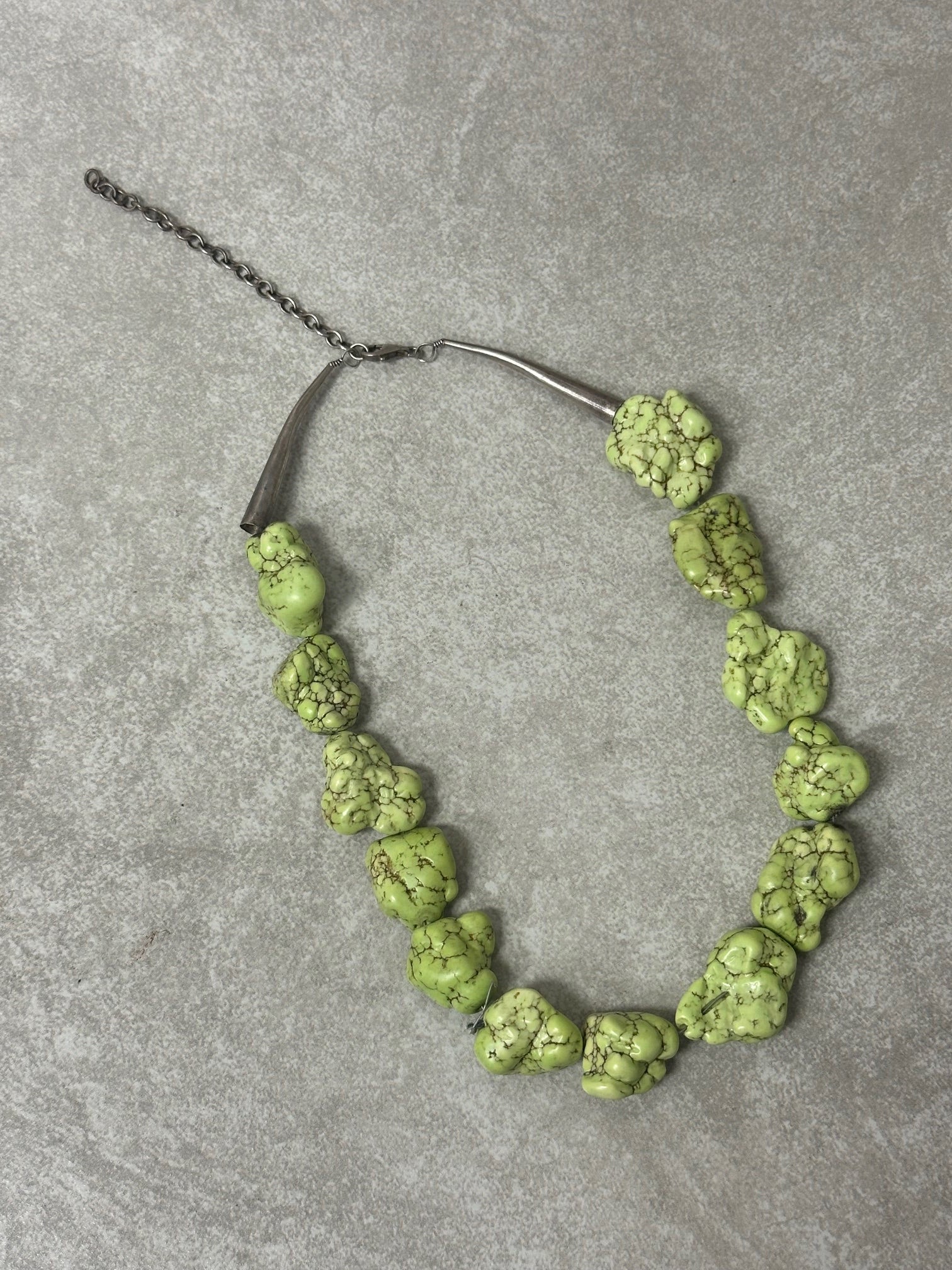 925 Sterling Silver Green Turqoise Nuggets Necklace