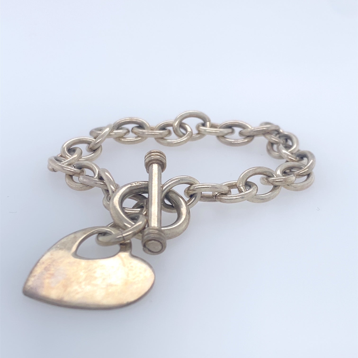 925 Sterling Silver Rolo Link Bracelet W/ Heart Charm
