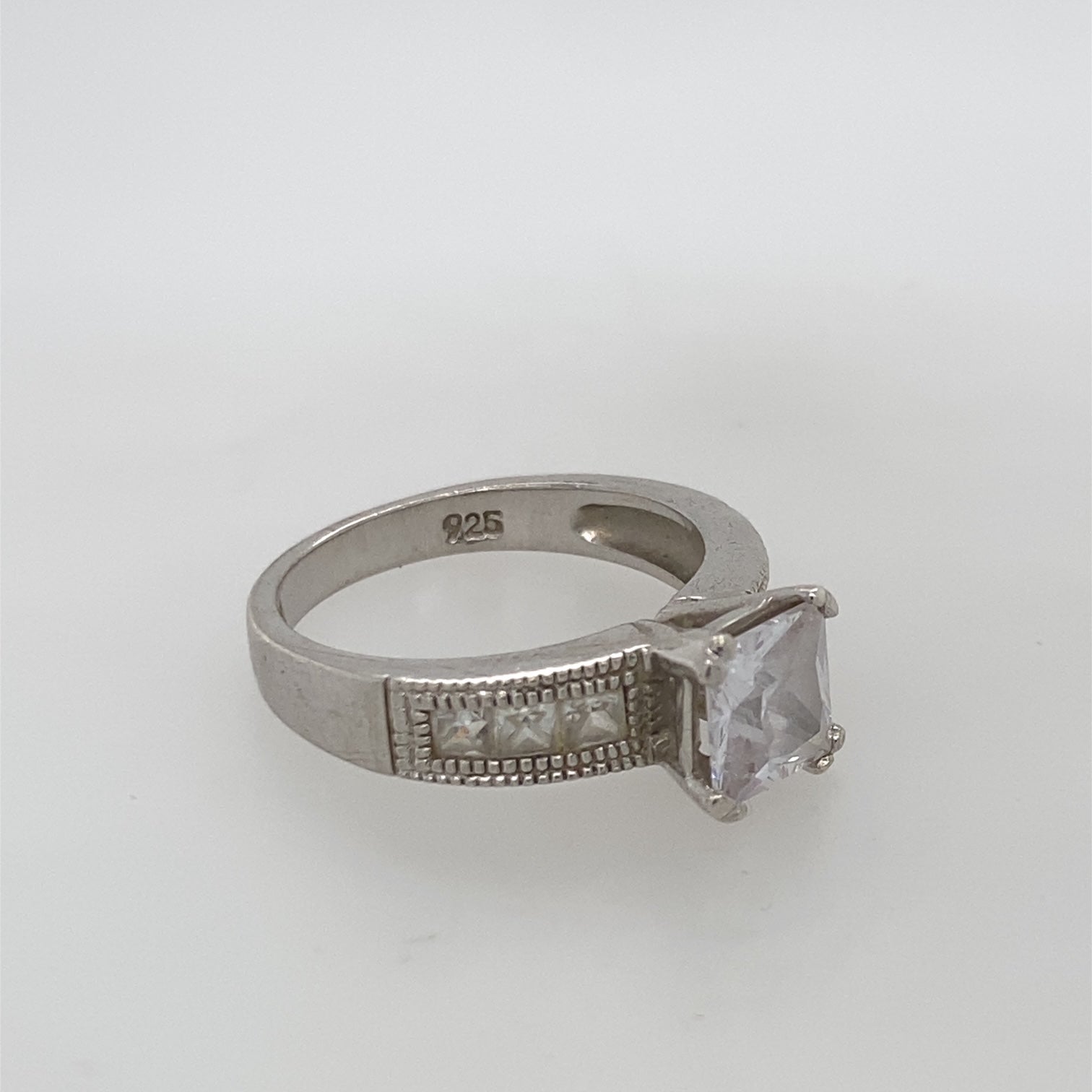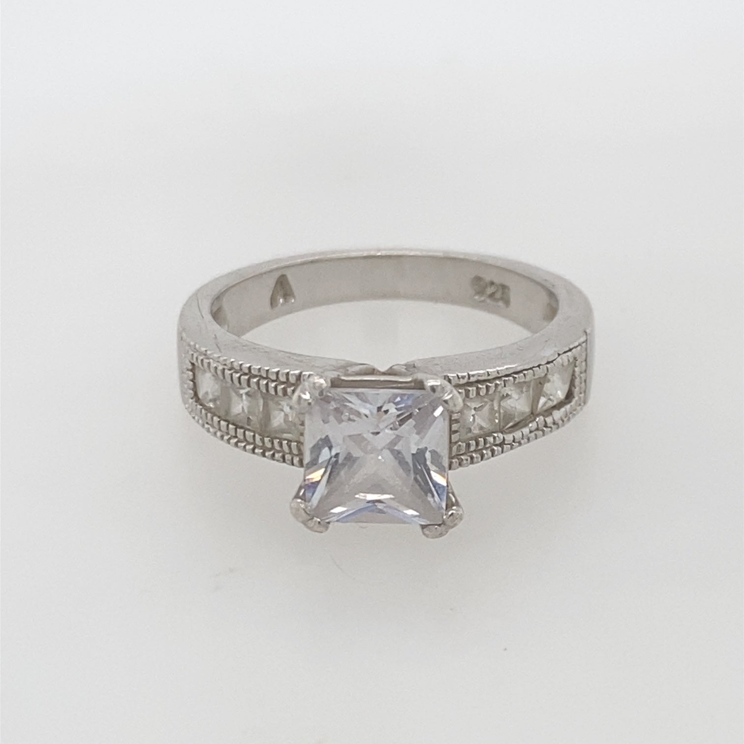 925 Sterling Silver Women's Ring W/ Center Square CZ Stone