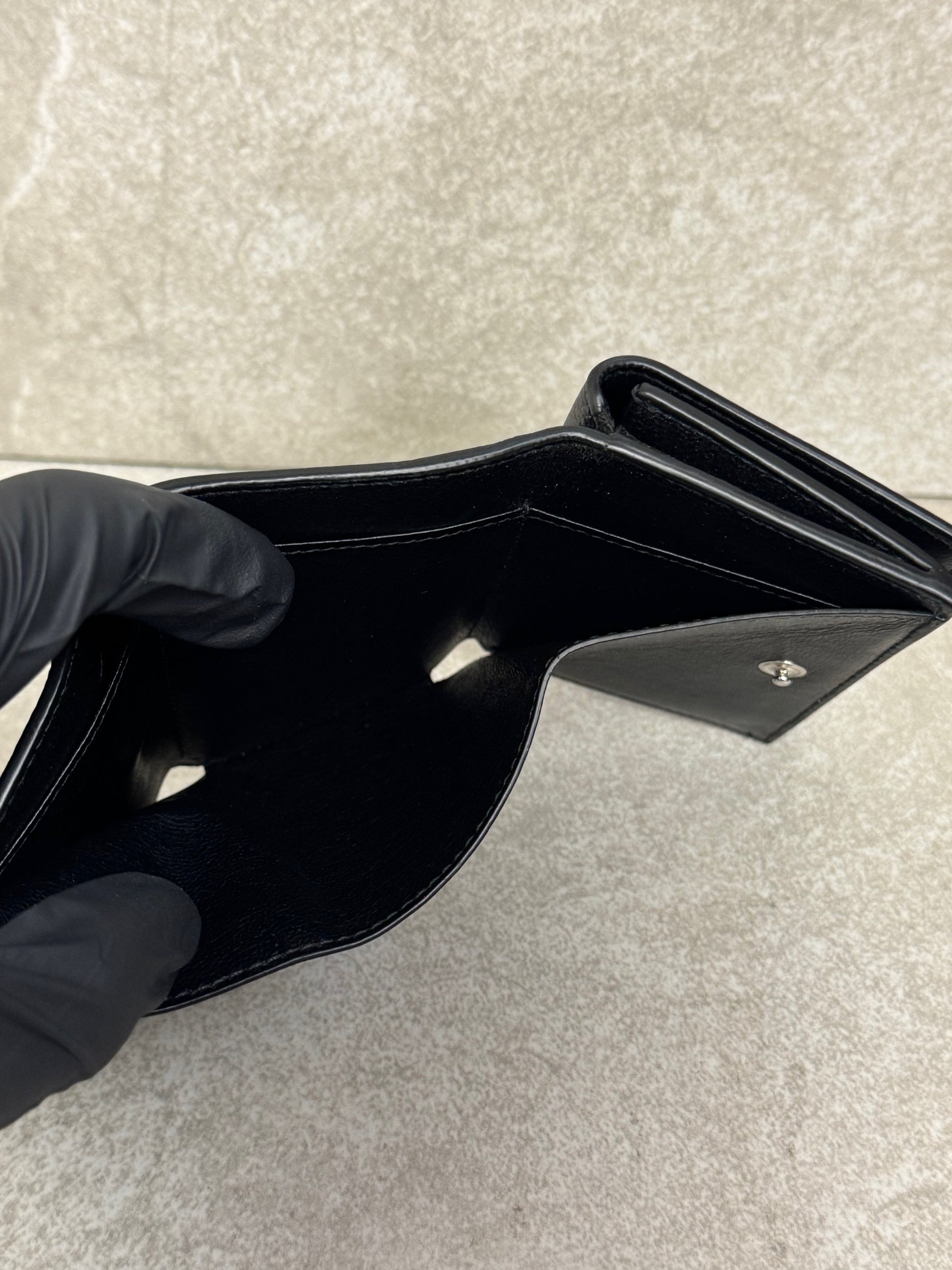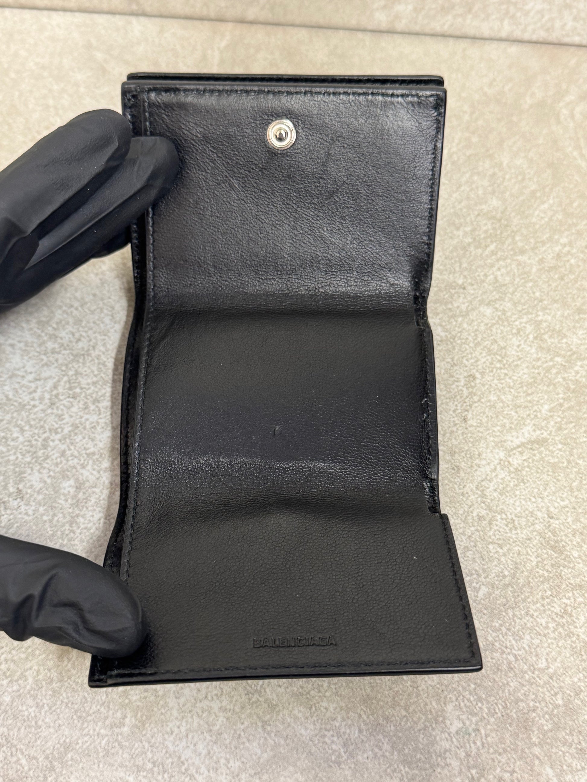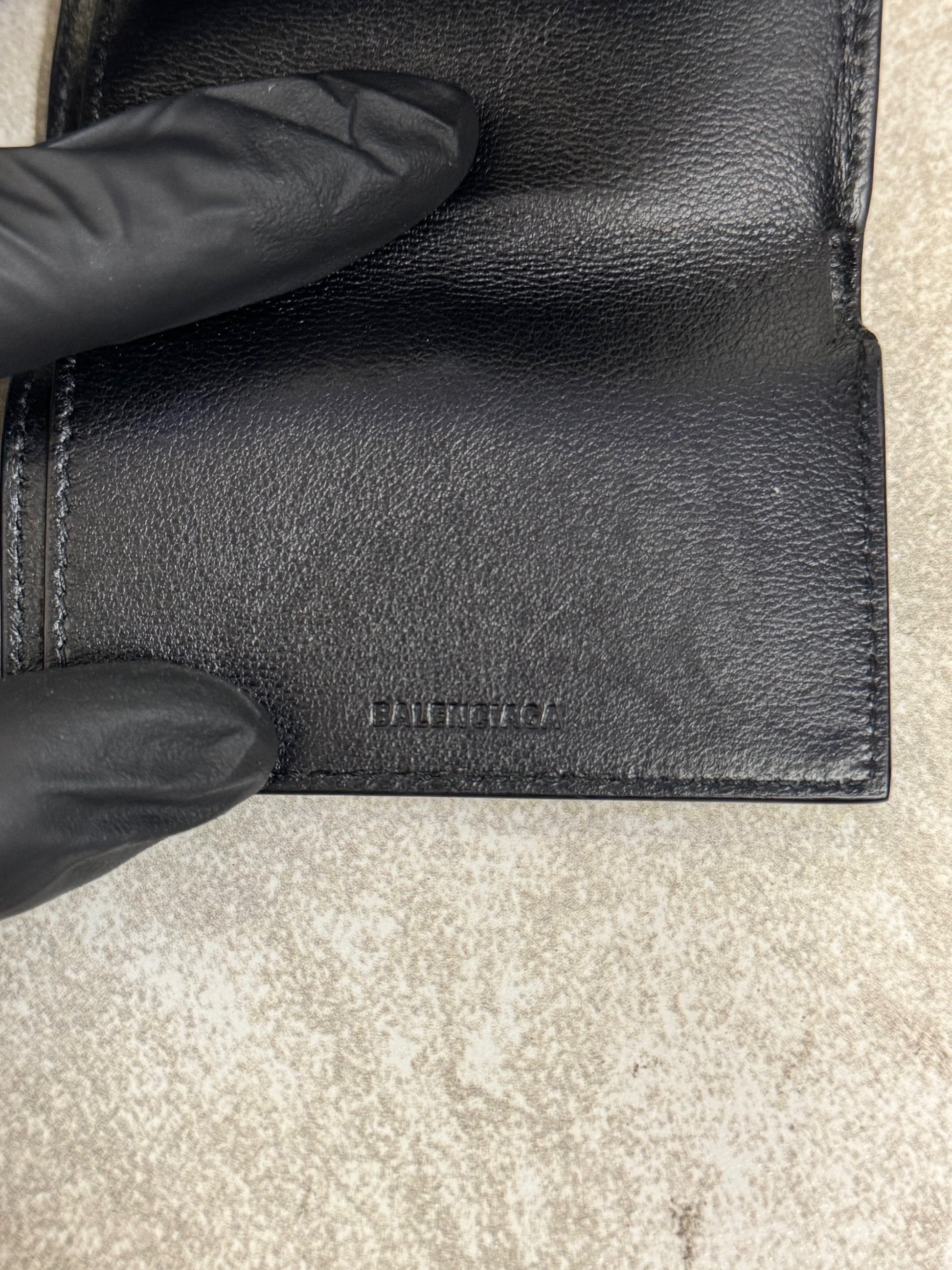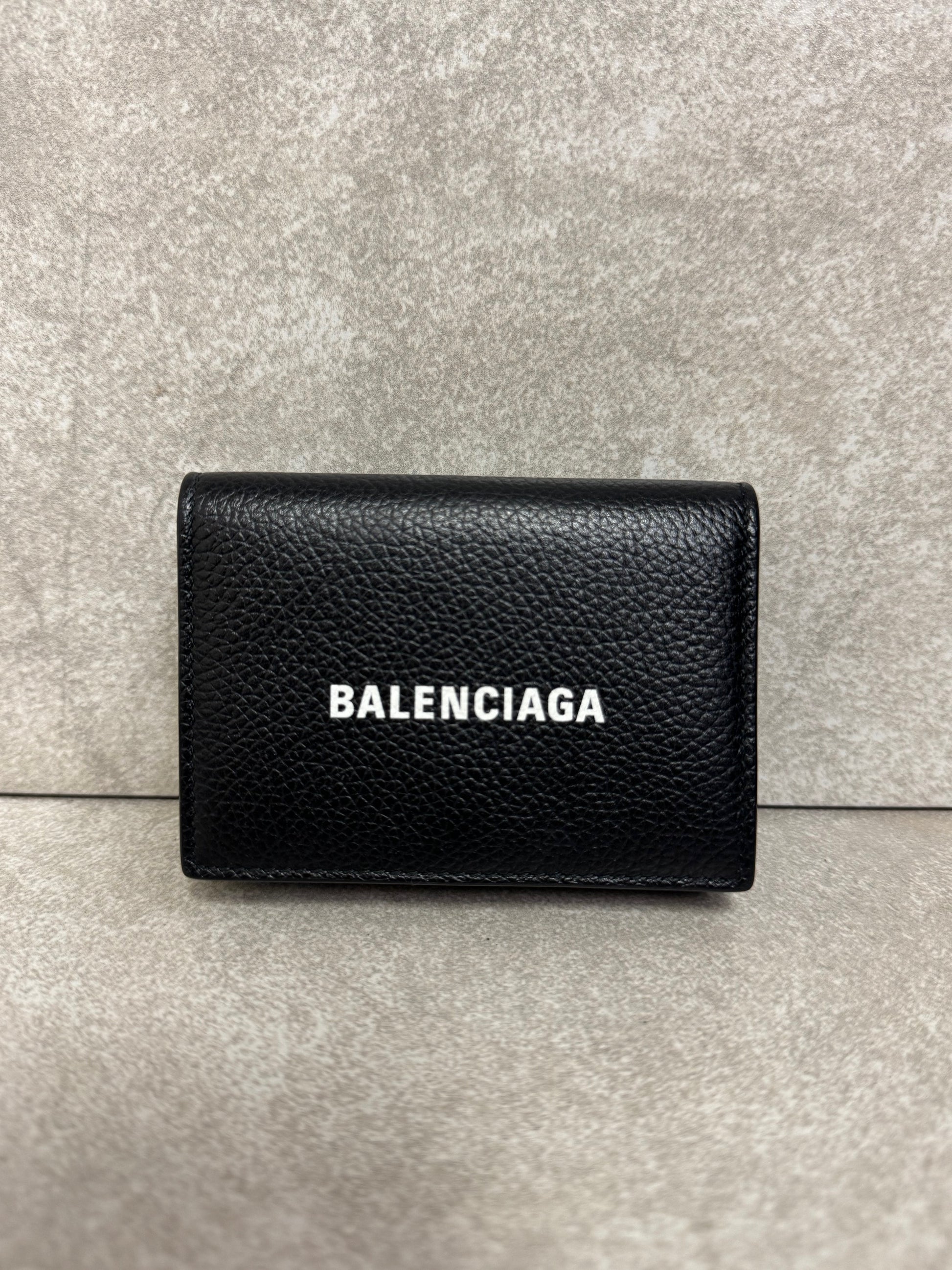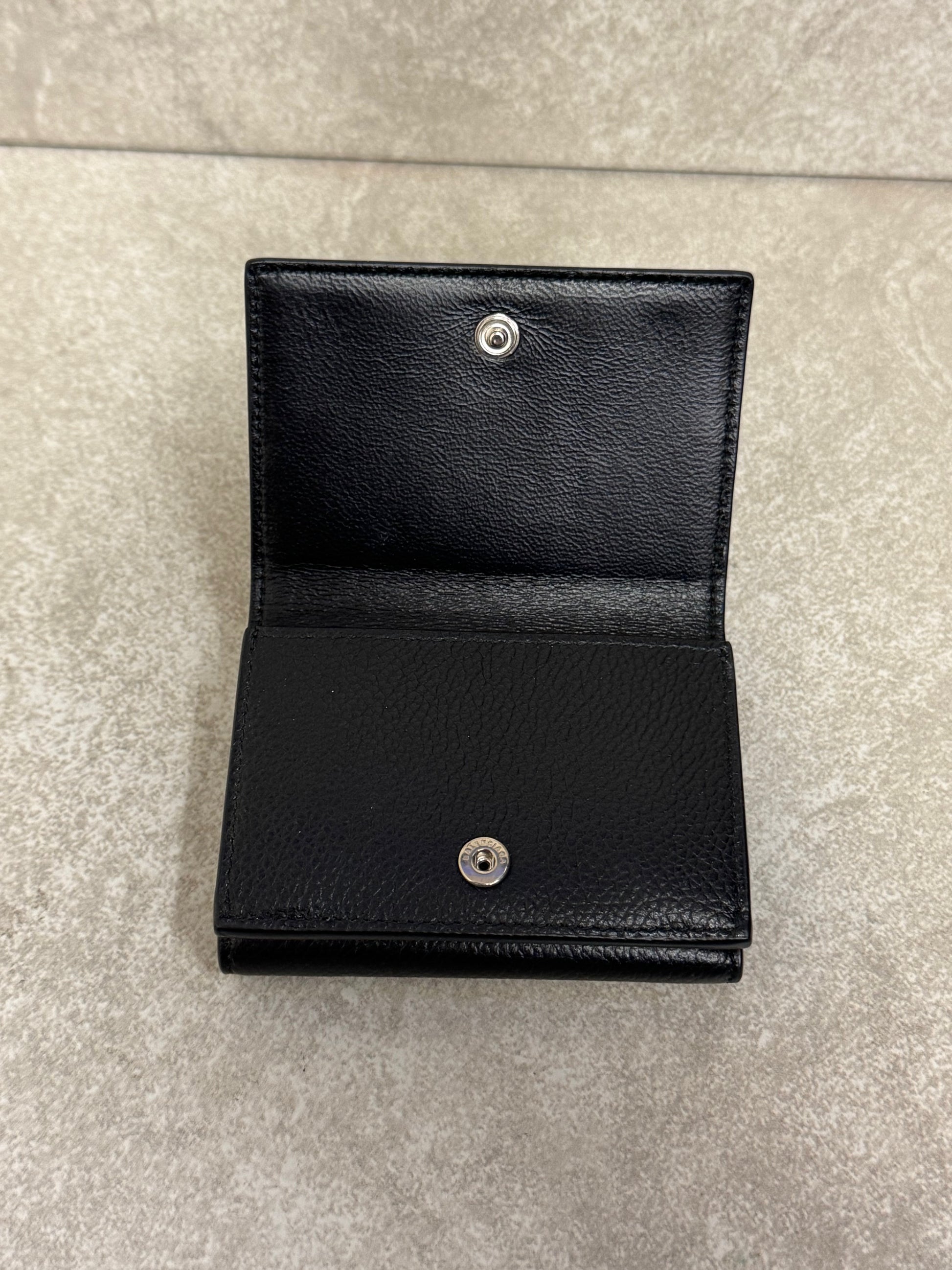 Balenciaga Logo-Print Full-Grain Leather Trifold Wallet