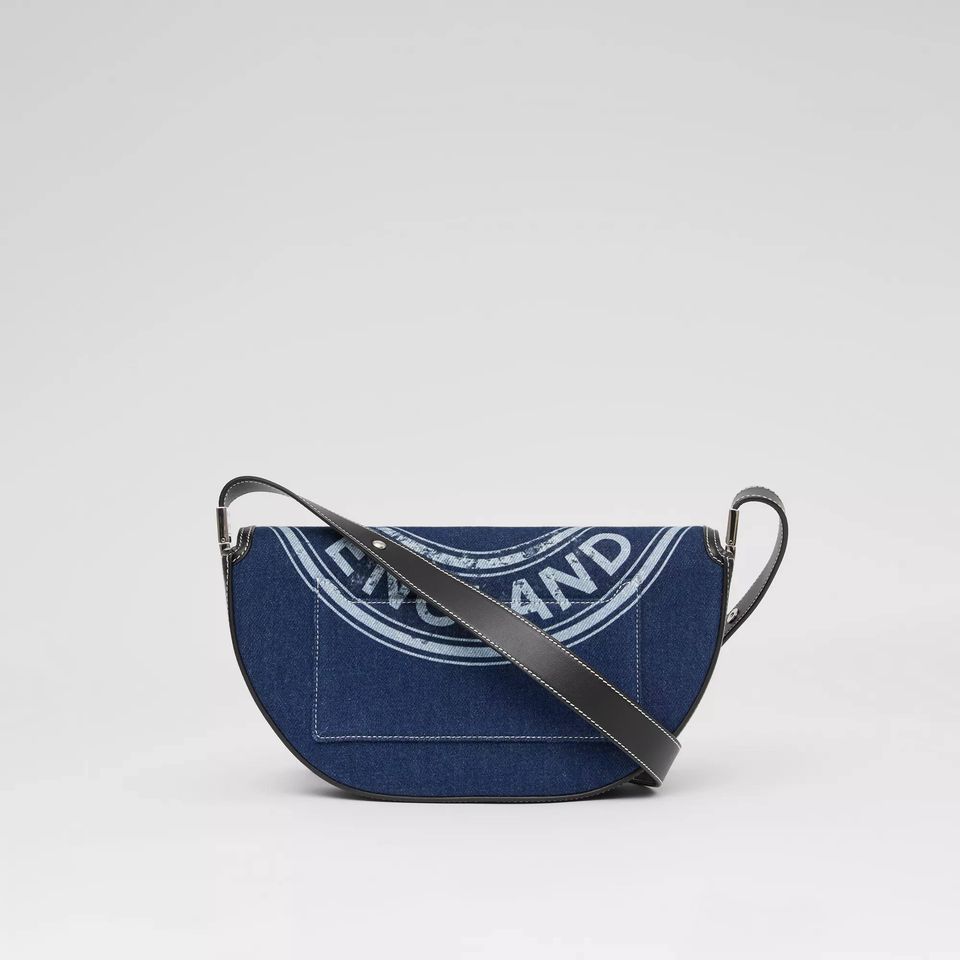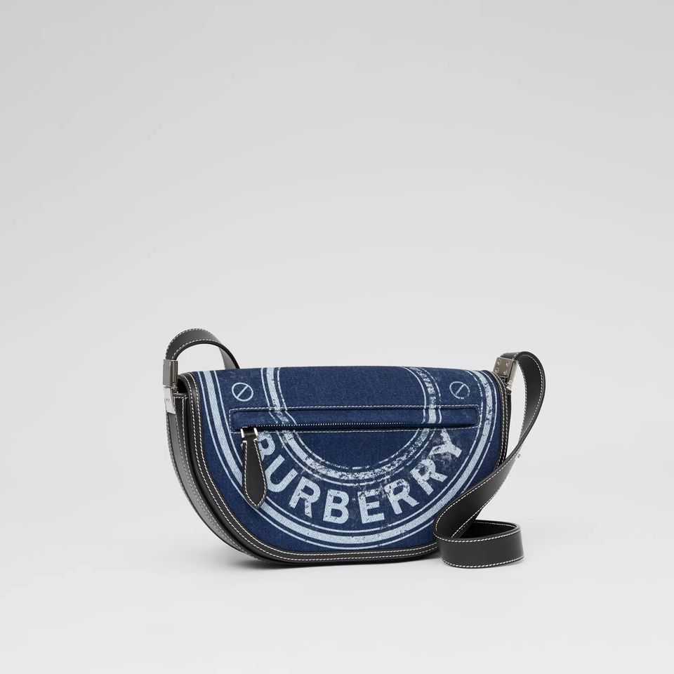 Burberry Small Logo Graphic Denim and Olympia Blue Calfskin Leather Shoulder Bag