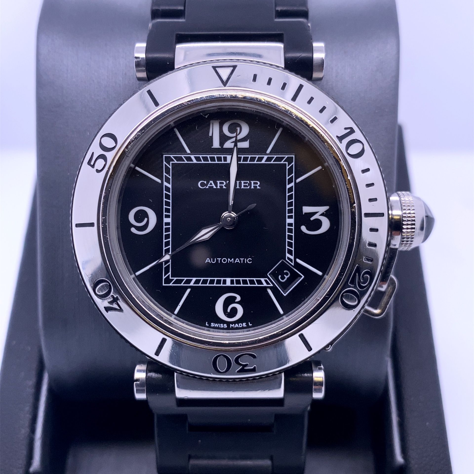 Cartier Pasha Seatimer 2790 40mm Steel Black Automatic Rubber Watch