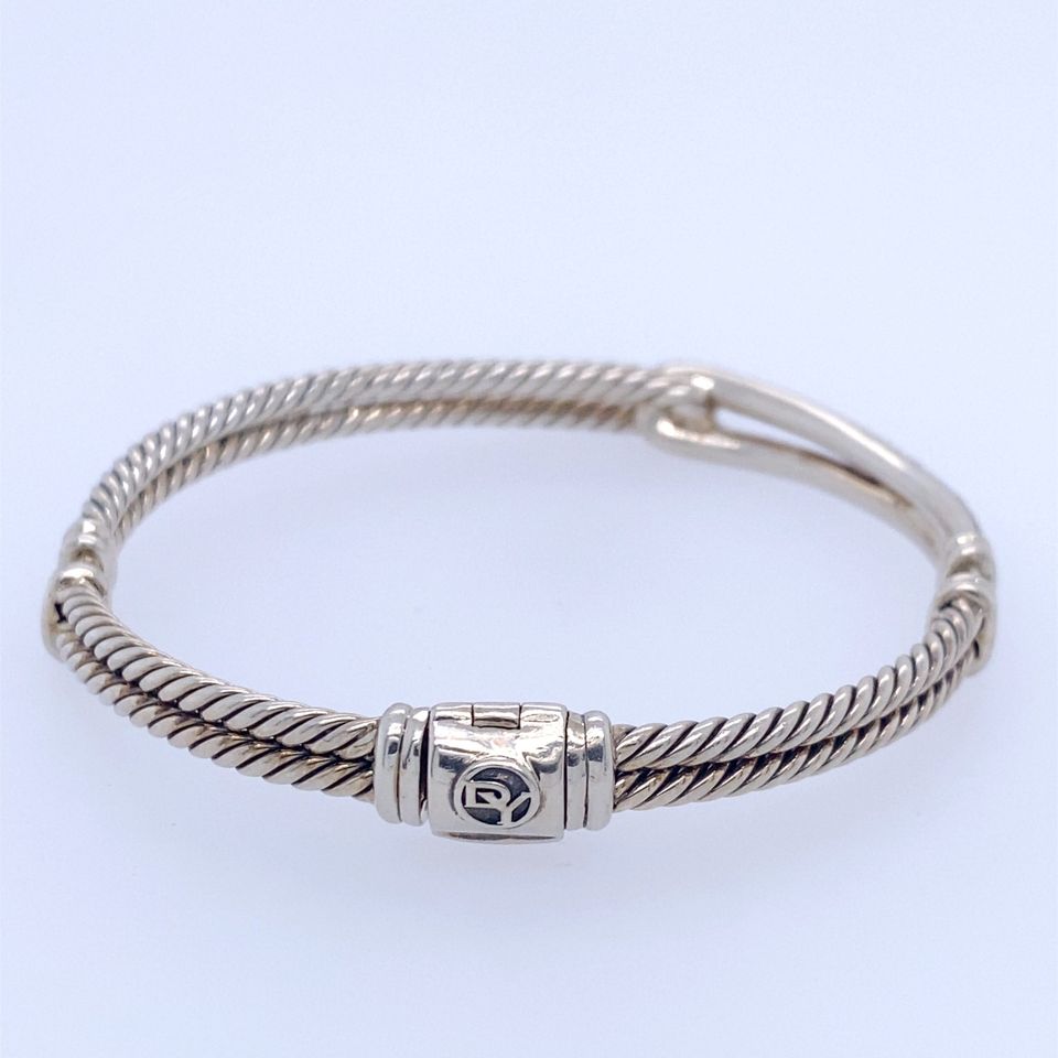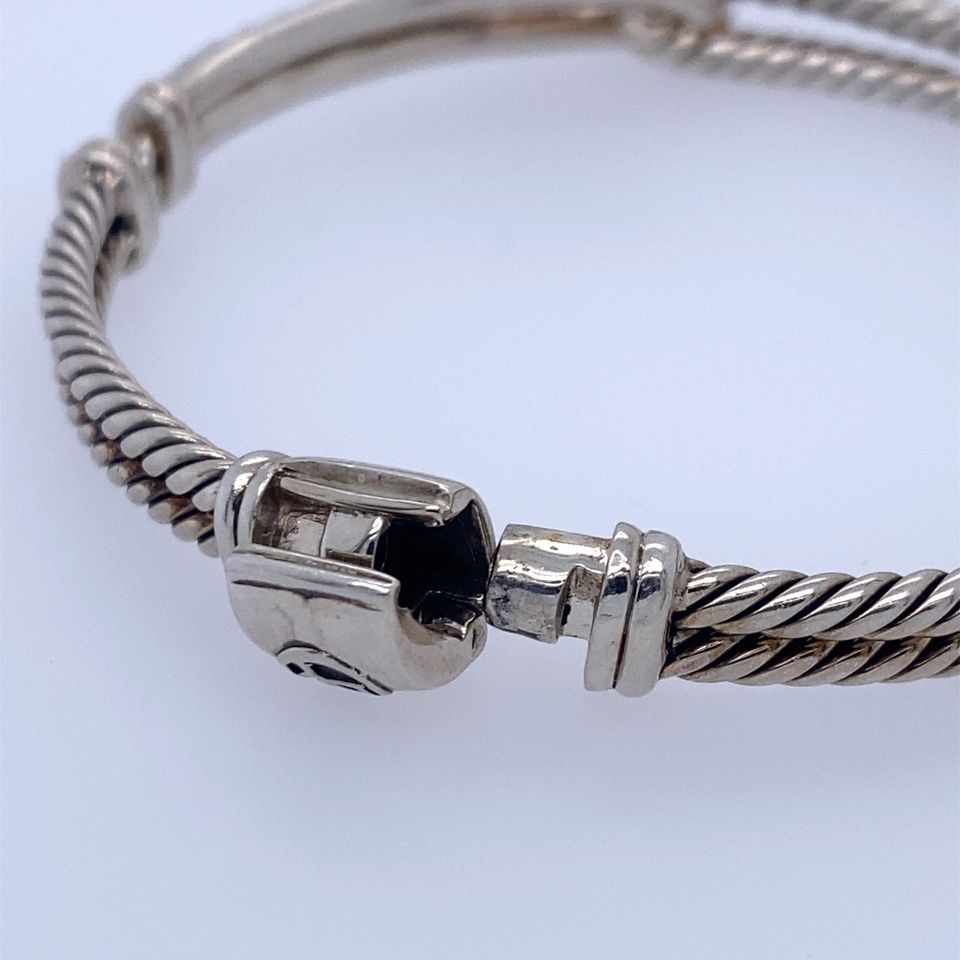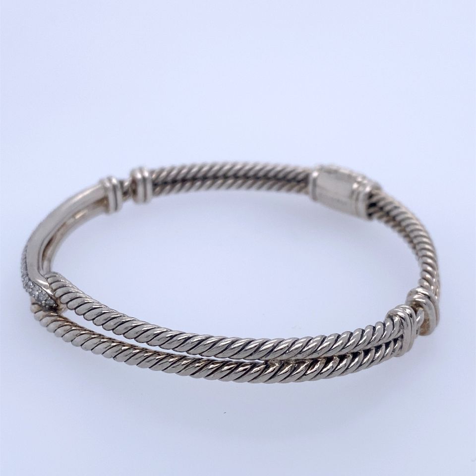 David Yurman Silver Diamond Labyrinth Single Loop Hinged Bracelet